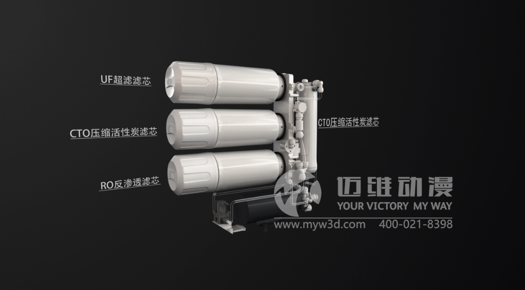 邁維動漫公司專注于高品質直飲水機三維動畫設計。采用先進的3D動畫技術,能夠將怡口純飲智享EUR511系列直飲水機產品TDS值彰顯品質生活、TDS可調引出產品、TDS調節(jié)原理、優(yōu)質濾芯、上下款機型演變、外觀展示等通過三維動畫的形式直觀展現(xiàn)。